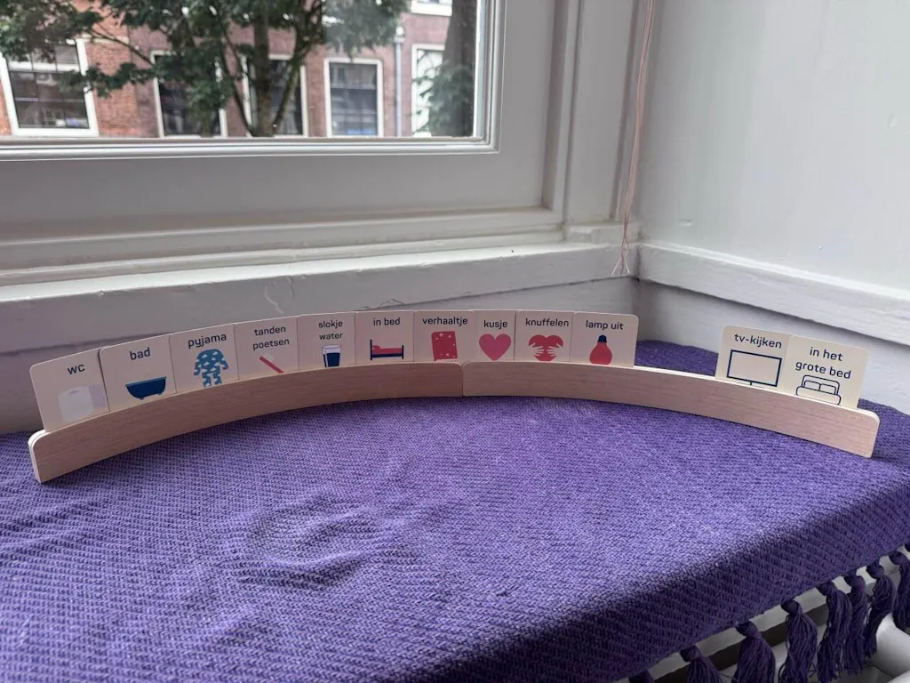 Voorheen duurde het bedritueel soms eindeloos — tandenpoetsen, nog een knuffel, nog een slokje water… Met de bedritueelkaartjes weet onze peuter precies wat er komt. De vaste volgorde geeft haar houvast, en wij merken dat ze sneller tot rust komt. De avonden verlopen weer ontspannen en we hebben als ouders eindelijk weer tijd over.